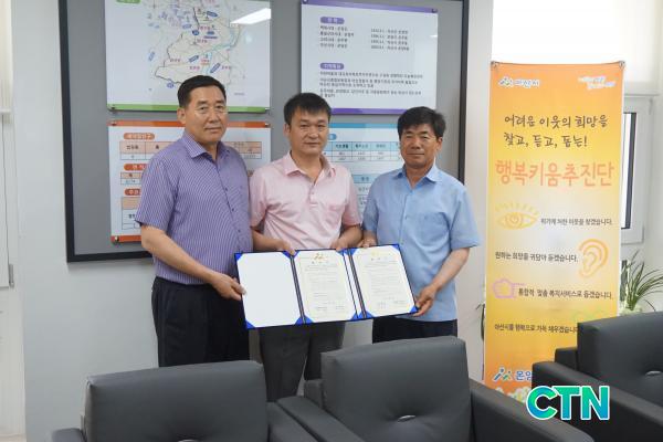 [¾Æ»ê/ctn]ÇѼºÁø ±âÀÚ = ¾Æ»ê½Ã ¿Â¾ç6µ¿ ÇູŰ¿òÃßÁø´Ü(´ÜÀå ÀÌÁ¾¼ö)°ú (ÁÖ)ÅÂÈ»ê¾÷(´ëÇ¥ ÀÓÁ¤¹è/Áºε¿ ¼ÒÀç)´Â Áö³ 23ÀÏ ¿Â¾ç6µ¿Áֹμ¾ÅÍ µ¿Àå½Ç¿¡¼ Àú¼Òµæ ÁÖ¹ÎÀÇ »îÀÇ Áú Çâ»ó°ú Áö¿ª°øµ¿Ã¼ ȸº¹À» À§ÇÑ ÈÄ¿ø Çù¾àÀ» ü°áÇß´Ù.