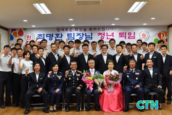 Æò»ýÀ» ¼Ò¹æ°ø¹«¿øÀ¸·Î Çå½ÅÇÑ ÃÖ¸íȯ ºÎ¼¾ÅÍÀå¿¡°Ô´Â °øÀûÆÐ ¹× ÈÆÀåÀÌ ¼ö¿©µÆÀ¸¸ç, Çà»ç¿¡ Âü¼®ÇÑ ¼Ò¹æ°ø¹«¿ø ¹× ÀÇ¿ë¼Ò¹æ´ë¿øµéÀº ¸í¿¹·Î¿î ÅðÀÓÀ» ÃàÇÏÇϰí, ¼®º°ÀÇ ¾Æ½¬¿òÀ» ´ã¾Æ ²É´Ù¹ßÀ» ÁõÁ¤Çß´Ù.