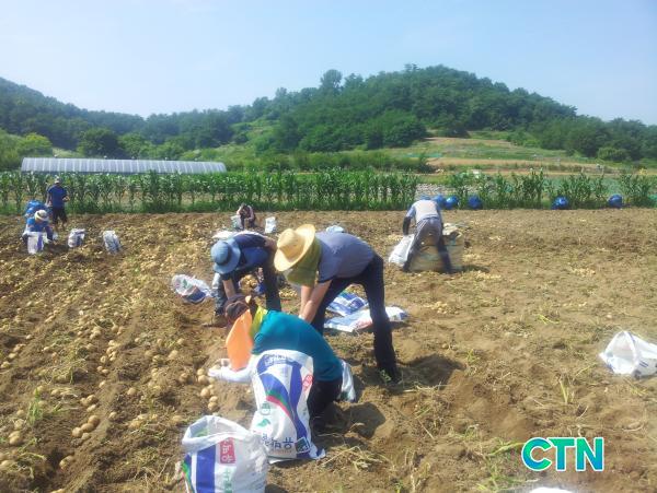 À̳¯ ºÀ»çȰµ¿¿¡´Â Á÷¿ø 10¿©¸íÀÌ °¨ÀÚ Ä³±â, °¨ÀÚ¼±º° ÀÛ¾÷ µî¿¡ Âü¿©ÇØ °¡¹³°ú ÀϼպÎÁ· µî ÀÌÁß°í¸¦ °Þ°í ÀÖ´Â ³ó¹ÎµéÀÇ ÀϼÕÀ» °Åµé¾ú´Ù.