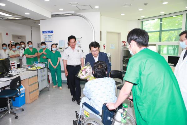 º¹±â¿Õ ¾Æ»ê½ÃÀåÀº "119¹ø ȯÀÚ°¡ ¿ÏÄ¡µÅ °Ý¸® Á¶Ä¡¿¡¼ ÀÏ¹Ý º´½Ç·Î À̵¿ÇØ Á¤¸» ±â»Ú´Ù"¸ç "ȯÀÚ°¡ °Ç°À» ȸº¹ÇØ ´ÙÇàÀÌ°í °Ç°ÇÏ°Ô Åð¿øÇÏ±æ ¹Ù¶õ´Ù"°í ¸»Çß´Ù.