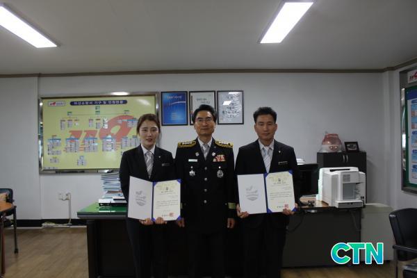 [¾Æ»ê/ctn]ÇѼºÁø ±âÀÚ = ¾Æ»ê¼Ò¹æ¼(¼Àå ÀÌÁ¾ÇÏ)´Â 16ÀÏ µÐÆ÷119¾ÈÀü¼¾ÅÍ(´ç½Ã ¹è¹æ119¾ÈÀü¼¾ÅÍ¿¡¼ ±Ù¹«)¿¡ ±Ù¹«ÇÏ´Â ¿À¿µ¼· Áö¹æ¼Ò¹æÀå(³²,42¼¼)°ú ¹è¹æ119¾ÈÀü¼¾ÅÍ¿¡ ±Ù¹«ÇÏ´Â Á¶¹Ì°æ Áö¹æ¼Ò¹æ±³(¿©,28¼¼)¿¡°Ô 'ÇÏÆ®¼¼À̹ö'(Heart Saver) ÀÎÁõ¼¸¦ ¼ö¿©Çß´Ù.