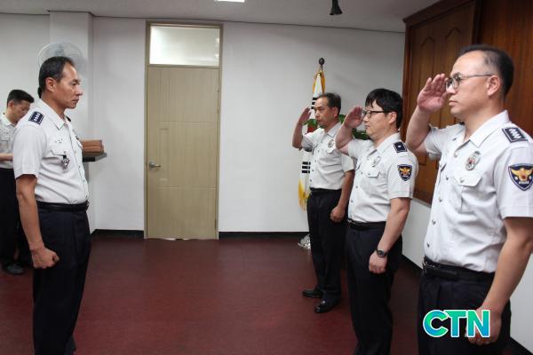 [¼Ãµ/ctn]ÀÓÁ¾º¹ ±âÀÚ = Ãæ³² ¼Ãµ°æÂû¼(¼Àå ¹ÚÈñ¿ë)´Â 17ÀÏ °æÂû¼ 2Ãþ ¼ÒȸÀǽǿ¡¼ °¢ °úÀ塤°èÀå ¹× Áö±¸´ë¡¤ÆÄÃâ¼ÒÀå µî 25¸í Âü¼®ÇÑ °¡¿îµ¥ ¾÷¹«À¯°øÀÚ¿¡ ´ëÇÑ Ç¥Ã¢¼ö¿©½ÄÀ» °¡Á³´Ù.