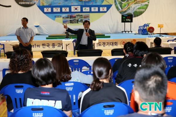 ³ë¹Ú·¡ ¼Ãµ±º¼ö´Â "Á¦1ȸ Çѱ¹Áß°í¿¬¸ÍÇùȸÀå±â Àü±¹ ¿ªµµ°æ±â´ëȸ¸¦ ¼Ãµ±º¿¡¼ °³ÃÖÇÏ°Ô µÇ¾î ¹«Ã´ ±â»Ú°Ô »ý°¢ÇÑ´Ù"¸ç, "Æò¼Ò °¥°í ´ÛÀº ½Ç·ÂÀ» À¯°¨¾øÀÌ ¹ßÈÖÇØ ÁÁÀº °á°ú¸¦ ¾ò±â ¹Ù¶õ´Ù"°í ¼±¼öµéÀ» °Ý·ÁÇß´Ù.