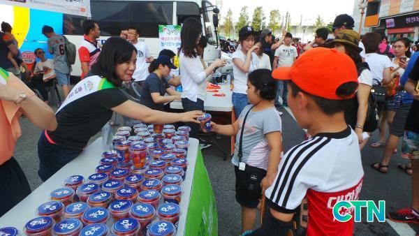 À̳¯ Çà»ç´Â ÇÑÈ VS ±â¾Æ °æ±â¿¡ ¾Õ¼ ¾ß¿Ü ¹«´ë Ưº°ºÎ½º¿¡¼ Ãæ³²µµ¿Í ³óÇù Ãæ³²Áö¿ªº»ºÎ°¡'Ãæ³²¿À°¨'À» È«º¸Çϱâ À§ÇØ ¾ß±¸Àå °ü¶÷°´À» ´ë»óÀ¸·Î È«º¸¿ë ÄŰúÀÏ(¹æ¿ïÅ丶Åä) 5,000°³¸¦ ³ª´©¾î ÁÖ¾ú´Ù.