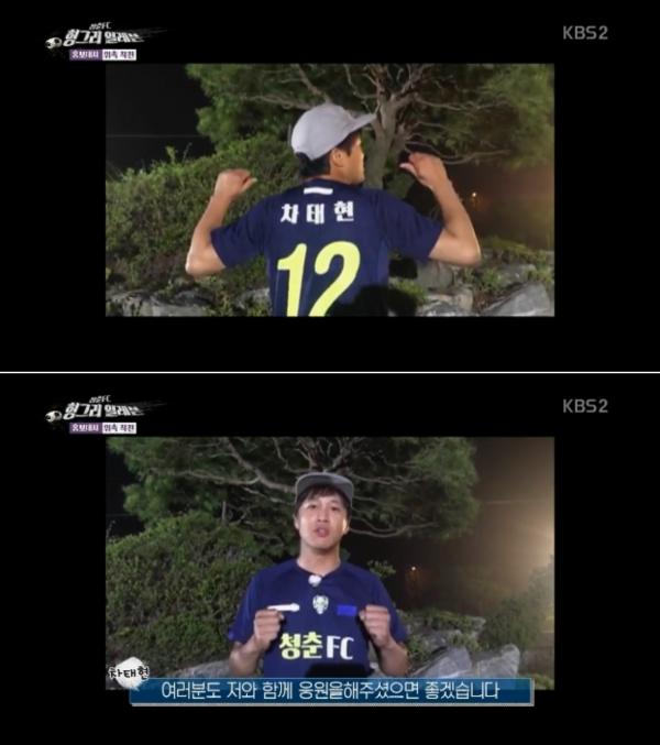 Áö³ 15ÀÏ ¹æ¼ÛµÈ KBS 2TV 'ûÃáFC Çë±×¸®ÀÏ·¹ºì'(¿¬Ãâ ÃÖÀçÇü)¿¡¼´Â ¹è¿ì Â÷ÅÂÇöÀÌ 'ûÃáFC'ÀÇ 1È£ ¼Æ÷ÅÍÁî·Î ³ª¼°Ô µÇ´Â Àå¸éÀÌ ±×·ÁÁ³´Ù. ¸í¿¹´ÜÀåÀ» °âÁ÷ÇÏ°Ô µÇ´Â Â÷ÅÂÇöÀº 'ûÃáFC'ÀÇ 12¹øÀ» ºÎ¿©¹Þ¾Ò°í ¾ÕÀ¸·Î È«º¸ ´ë»ç ¿ªÇÒµµ µµ¸Ã¾Æ »ó½Â¼¼¸¦ À̾°í ÀÖ´Â 'ûÃáFC Çë±×¸®ÀÏ·¹ºì'ÀÇ ºÕ¾÷¿¡ ÈûÀ» º¸ÅÅ ¿¹Á¤ÀÌ´Ù.
