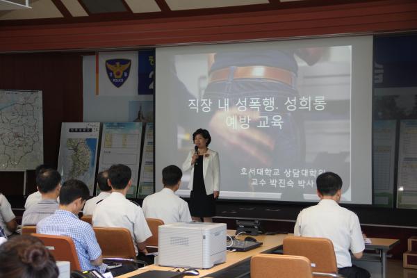 [¾Æ»ê/ctn]ÇѼºÁø ±âÀÚ = ¾Æ»ê°æÂû¼(¼Àå ½ÅÁÖÇö)´Â 17ÀÏ ¿ÀÀü ¾Æ»ê°æÂû¼ ´ëȸÀǽǿ¡¼ °æÂû¼ ÀüÀÔ°æÂû°ü µî °æÂû°ü 130¿©¸íÀÌ Âü¼®ÇÑ °¡¿îµ¥, ¹ÚÁø¼÷ È£¼´ëÇб³ ½É¸®Çаú ±³¼öÀÇ °ÀÇ·Î Á÷Àå³» ¼ººñÀ§ ±ÙÀýÀ» À§ÇÑ ¼ººñÀ§ ¿¹¹æ±³À°À» ½Ç½ÃÇß´Ù.