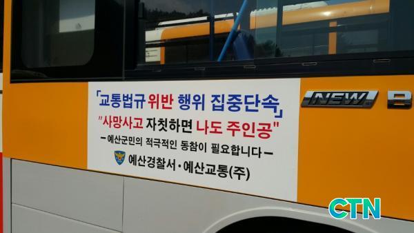 [¿¹»ê/ctn] ÃÖ¿ë°ü ±âÀÚ = ¿¹»ê°æÂû¼(¼Àå ÃÖÇö¼ø)´Â ±³Åë»ç°í ¹× ±³ÅëÁú¼¸¦ Áö۱â È®¸³À» À§ÇØ ¿¹»ê±³Åë(ÁÖ)¿Í ÇÔ²² ¿¹»ê±º³» ¿îÇà ¹ö½º ¿ÜºÎ¿¡ È«º¸¹®±¸¸¦ ºÎÂøÇÏ¿© Áֹλó´ë·Î È«º¸È°µ¿À» ÆîÄ¡°í ÀÖ´Ù.