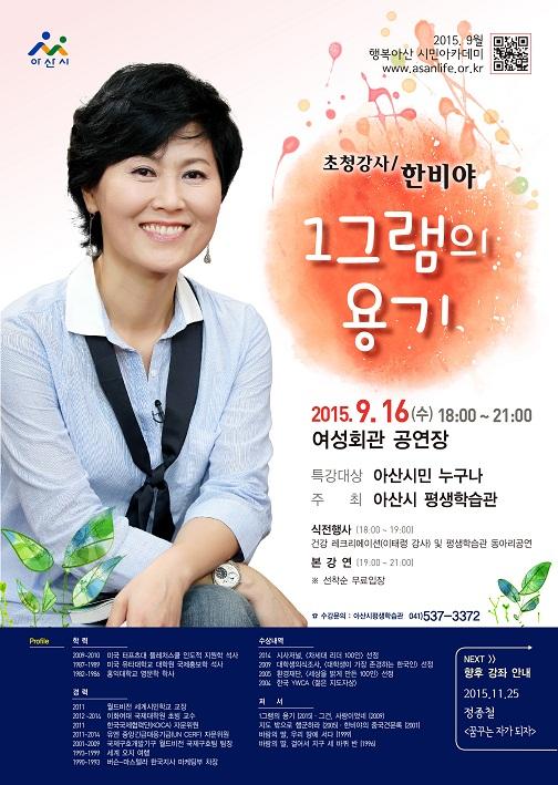 [¾Æ»ê/ctn]ÇѼºÁø ±âÀÚ = ¾Æ»ê½Ã Æò»ýÇнÀ¹®È¼¾ÅÍ(¼ÒÀå À̼º¿¬)´Â ¿À´Â 16ÀÏ ¿ÀÈÄ7½Ã ¿©¼ºÈ¸°ü °ø¿¬Àå¿¡¼ '¹Ù¶÷ÀÇ µþ'·Î Ä£¼÷ÇÑ ÇѺñ¾ß °»ç¸¦ ÃÊÃ»ÇØ '1 ±×·¥ÀÇ ¿ë±â'¶ó´Â ÁÖÁ¦·Î ½Ã¹Î¾ÆÄ«µ¥¹Ì¸¦ °³ÃÖÇÑ´Ù°í ¹àÇû´Ù.