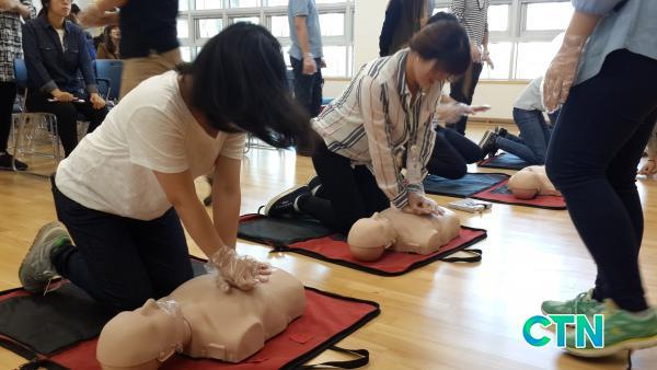 À̹ø ±³À°Àº °ø¹«¿øµéÀÇ ÇöÁöÃâÀå, °¢Á¾ Çà»ç µî ¾÷¹«¼öÇà°ú ÀÏ»ó »ýȰÁß Á÷¸éÇÒ ¼ö ÀÖ´Â ½ÉÁ¤ÁöȯÀÚµî ÀÀ±ÞȯÀÚ ¹ß»ý½Ã ´ëÀÀ´É·ÂÀ» Çâ»ó½ÃÄÑ °í±ÍÇÑ »ý¸íÀ» º¸È£Çϱâ À§ÇÏ¿© ¸¶·ÃÇÏ¿´À¸¸ç ¼øÃµÇâ´ëÇб³ Àü¹® ±³À°ÆÀÀ¸·ÎºÎÅÍ ½ÉÆó¼Ò»ý¼ú, ÀÚµ¿Á¦¼¼µ¿±â(AED) »ç¿ë¹æ¹ý, À̹°Áú¿¡ ÀÇÇÑ ±âµµÆó¼â ÀÀ±Þóġ µî À̷аú ½Ç½ÀÀ» º´ÇàÇØ Âü¼®ÀÚ Àü¿øÀÌ ½ÉÆó¼Ò»ý¼úÀ» Á÷Á¢ ½Ç½ÀÇÏ´Â ½Ã°£À» °¡Á³´Ù.