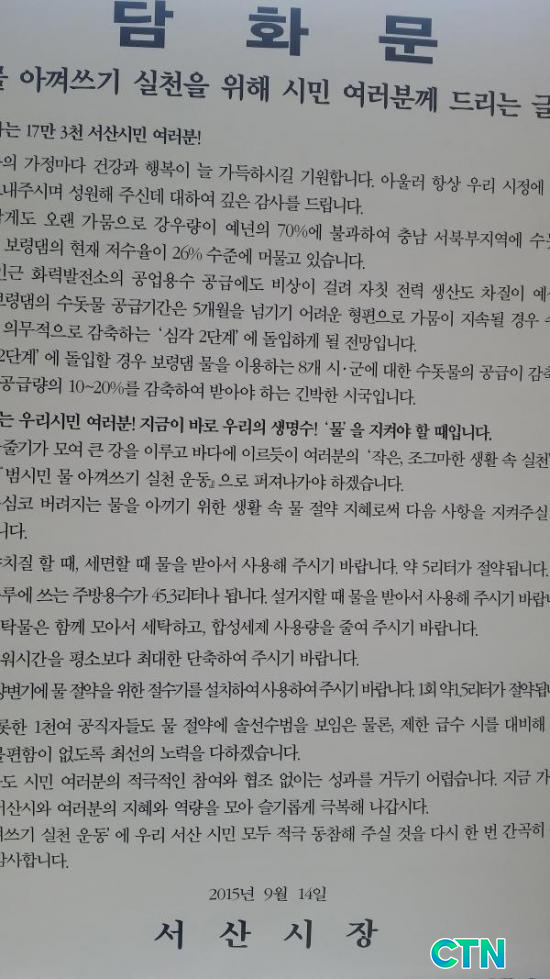 ƯÈ÷ ±Ø½ÉÇÑ °¡¹³À¸·Î º¸·É´ïÀÇ ÇöÀç Àú¼ö·®ÀÌ 26% ¼öÁØ¿¡ ¸Ó¹°°í ÀÖ¾î ½Ä¼ö°ø±Þ¿¡ ¾î·Á¿òÀ» °Þ°Ô µÅ ¼»ê½Ã°¡ ¹° ¾Æ²¸¾²±â ½ÇõÀ» À§ÇØ Áֹε鿡°Ô È£¼ÒÇÏ´Â ´ãȹ®À» ¹ßÇ¥ÇÏ´Â µî ¿Â °« ÇàÁ¤·ÂÀ» ½ñ¾Æ º×°í ÀÖ´Â »óȲ¿¡¼ º¸·É±Ç °ü¸®´ÜÀÇ ÀÌ °°Àº ´ÊÀå´ëó´Â ºñ³À» ¸éŰ ¾î·Æ°Ô µÆ´Ù.