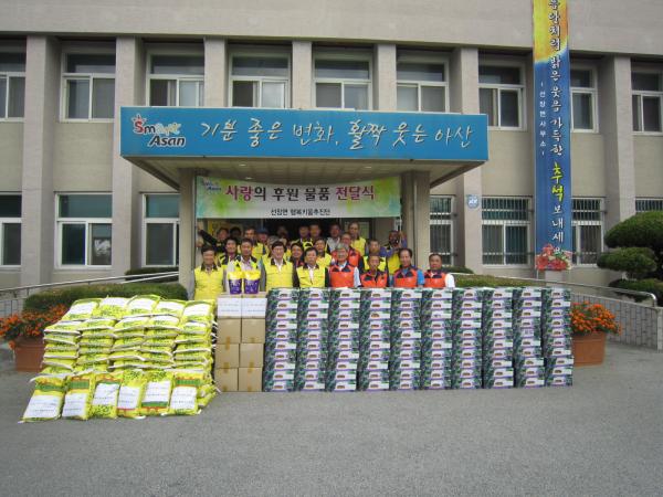 [¾Æ»ê/ctn]ÇѼºÁø ±âÀÚ = ¾Æ»ê½Ã ¼±Àå¸é ÇູŰ¿òÃßÁø´Ü(´ÜÀå ¹ÚÈ£±Ç)Àº Áö³ 24ÀÏ °ü³» ¾î·Á¿î ÀÌ¿ô 90¼¼´ë¿Í »çȸº¹Áö½Ã¼³ 4°³¼Ò¿¡ Ãß¼®¸íÀýÀ» ¾ÕµÎ°í ÇݽÒ(10kg) 124Æ÷, Æ÷µµ(5kg) 100¹Ú½º¸¦ Àü´ÞÇß´Ù.