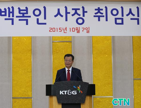 [°æÁ¦/ctn] Á¤¹ÎÁØ ±âÀÚ = KT&G´Â 7ÀÏ ´ëÀü±¤¿ª½Ã¿¡ À§Ä¡ÇÑ KT&G ÀÎÀç°³¹ß¿ø¿¡¼ ÀÓ½ÃÁÖÁÖÃÑȸ¸¦ °³ÃÖÇϰí, »õ·Î¿î CEO·Î ¼±ÀÓµÈ ¹éº¹ÀÎ ½ÅÀÓ»çÀå Ãâ¹üÀ» °ø½Ä ¼±Æ÷Çß´Ù.
