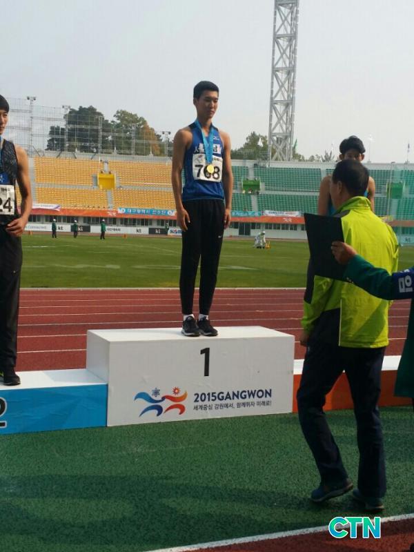 100m Á¾¸ñ ÀÌÀçÇÏ(22)´Â Çã¹÷Áö ºÎ»ó¿¡µµ ºÒ±¸Çϰí ÅõÈ¥À» ¹ßÈÖÇϸç 10ÃÊ 59¸¦ ±â·Ï, ³²ÀÚ ÀϹݺΠ100m Àº¸Þ´ÞÀ» ȹµæÇß°í ÃÖ¼±¿õ(25)¿Í ÇÔ²² ÃæÃ»³²µµ ´ëÇ¥·Î ÃâÀüÇÑ 400m °èÁÖ¿¡¼´Â 41ÃÊ 50ÀÇ ±â·ÏÀ¸·Î µ¿¸Þ´ÞÀ» ȹµæÇß´Ù.