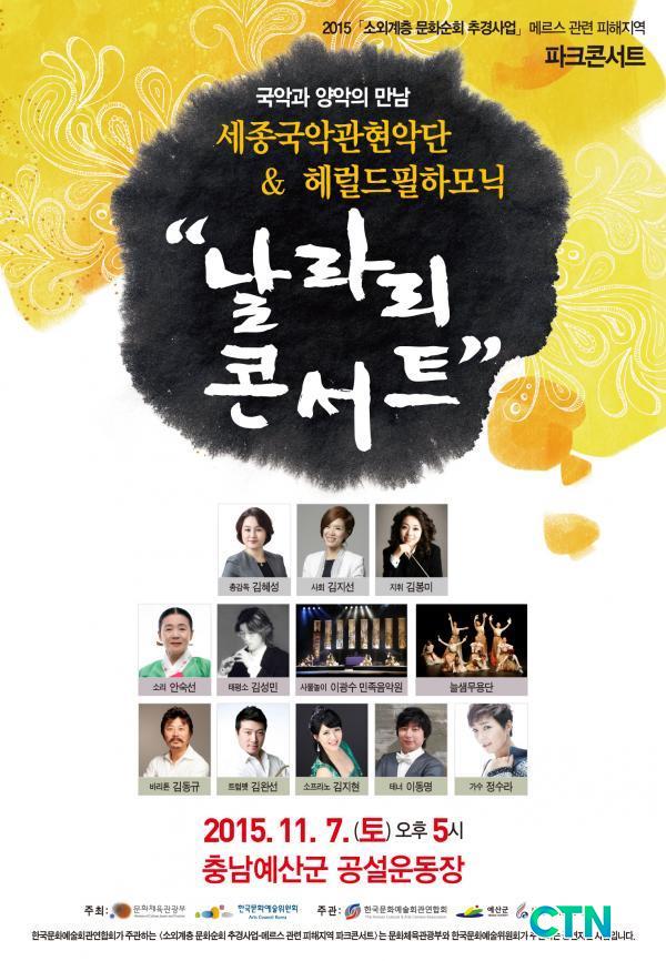 »ç»ó ÃÖ´ë ±Ô¸ð·Î ±¹¾Ç°üÇö¾Ç´Ü°ú ¾ç¾Ç ¿ÀÄɽºÆ®¶ó°¡ ¿¹»ê±º¹ÎµéÀ» ã¾Æ°£´Ù. À̹ø ÆÄÅ©ÄܼƮ´Â ¸Þ¸£½º°ü·Ã ÇÇÇØÁö¿ª Àü¾× ±¹ºñ°ø¿¬À¸·Î 100¿© ÆòÀÇ ¾ß¿Ü¹«´ë¿¡¼ ±¹³» ÃÖÁ¤»ó Ã⿬ÁøµéÀÌ '±¹¾Ç°ú ¾ç¾ÇÀÇ ¸¸³²'À̶ó´Â ÄܼÁÆ®·Î ³î±â ÁÁ¾ÆÇÏ´Â »ç¶÷À» ÀÏÄ´ ¸»ÀÎ "³¯¶ó¸® ÄܼƮ"¶ó´Â ŸÀÌÆ²·Î 11¿ù 7ÀÏ ¿ÀÈÄ 5½ÃºÎÅÍ ¿¹»ê±º°ø¼³¿îµ¿Àå¿¡¼ ÁøÇàµÈ´Ù.