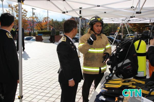 À̳¯ ±â³äÇà»ç¿¡ Âü¼®ÇÑ ±º¼ö ¹× ±¹È¸ÀÇ¿ø µî »çȸÁöµµÃþ Àλç 16¸íÀº ½ÄÀüÇà»ç·Î ÁøÇàµÈ ¼Ò¹æÀåºñ üÇèÀå¿¡¼ ¼Ò¹æ°ü °³ÀξÈÀüÀåºñ¸¦ Á÷Á¢ Âø¿ëÇϰí 10¿©Á¾ÀÇ ±¸Á¶Àåºñ¸¦ üÇèÇϸç, ¼Ò¹æÀÇ ³¯ ÃàÇϸ޽ÃÁö¸¦ Àü´ÞÇß´Ù.