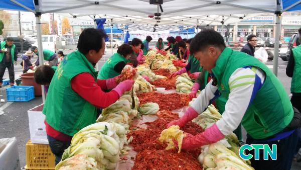 Âü°¡ÀÚµéÀº ¹èÃß 1000Æ÷±â¸¦ ¸¶·ÃÇØ ÀýÀÌ°í ¾ç³äÀ» ÁغñÇØ ±èÄ¡¿¡ ¹ö¹«·Á Æ÷ÀåÇÏ´Â µî ¾î·Á¿î ÀÌ¿ôÀ» µ½±â À§ÇØ ±¸½½¶¡À» Èê·È´Ù.