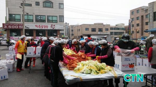 Âü°¡ÀÚµéÀº ¹èÃß 1000Æ÷±â¸¦ ¸¶·ÃÇØ ÀýÀÌ°í ¾ç³äÀ» ÁغñÇØ ±èÄ¡¿¡ ¹ö¹«·Á Æ÷ÀåÇÏ´Â µî ¾î·Á¿î ÀÌ¿ôÀ» µ½±â À§ÇØ ±¸½½¶¡À» Èê·È´Ù.