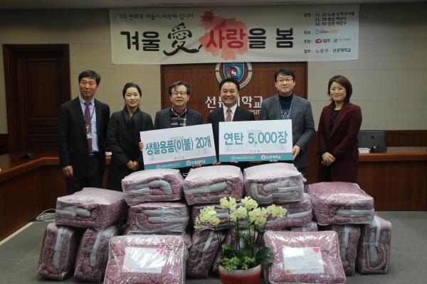¼±¹®´ëÇб³°¡ ¾Æ»ê½Ã¿¡ Àü´ÞÇÑ ÈÄ¿øÇ°Àº ¿¬Åº 5,000Àå°ú µ¿Àý±â ħ±¸·ù 20¼¼Æ®·Î '»ç´Ü¹ýÀÎ ÀÚ¿øºÀ»ç ¾Ö¿ø'(ÀÌ»çÀå ¹®ÈƼ÷)À» ÅëÇØ µ¶°Å³ëÀÎ 10¼¼´ë¿Í 4°³ ÁßÇб³ÀÇ ±³À°º¹Áö¾Æµ¿¼¼´ë¿¡ Àü´ÞµÉ ¿¹Á¤ÀÌ´Ù.