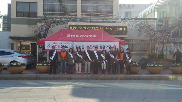 [¾Æ»ê/ctn]ÇѼºÁø ±âÀÚ = ¾Æ»ê½Ã ¿Â¾ç5µ¿(µ¿Àå °¿ë±¸)Àº 7ÀÏ Ãæ³²»çȸº¹Áö°øµ¿¸ð±Ýȸ ÁÖ°ü 'Èñ¸Á2016³ª´®Ä·ÆäÀÎ ÀÌ¿ôµ½±â¼º±Ý ÁýÁ߸ð±ÝÇà»ç'¸¦ °³ÃÖÇß´Ù.