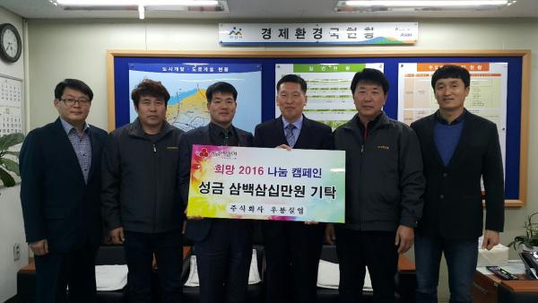[¾Æ»ê/ctn]ÇѼºÁø ±âÀÚ = ¢ß¿ì·æ½Ç¾÷(´ëÇ¥ ÀÌÈ«¿±) Á÷¿ø Àϵ¿Àº Áö¿ª º¹Áö Çâ»óÀ» À§ÇØ Áö³ 9ÀÏ ¾Æ»ê½Ã¸¦ ã¾Æ ¼º±ÝÀ» Àü´ÞÇß´Ù.