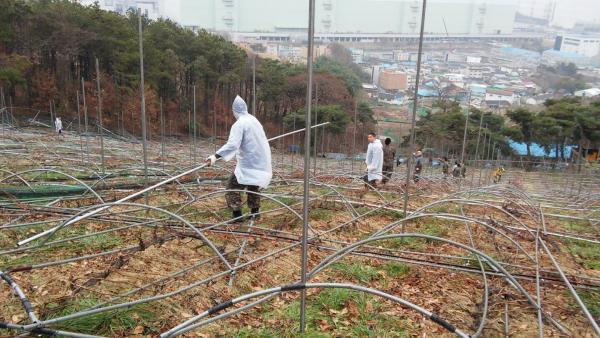 À̳¯ ÅÁÁ¤¸é °ø¹«¿ø 5¸í, ÅÁÁ¤³óÇù Á÷¿ø 5¸í, ÅÁÁ¤¸é ¿¹ºñ±ºÁß´ë 10¸íµî ÃÑ 20¸íÀÌ Æø¼³ ÇÇÇØ¸¦ ÀÔÀº ÅÁÁ¤¸é ¸í¾Ï¸® ¼Õ¾¾ ³ó°¡¸¦ ¹æ¹®ÇØ Æ÷µµ ºñ°¡¸² ½Ã¼³(6,600§³) ÇØÃ¼ ¹× ¿î¹ÝÀÛ¾÷ µî ÇÇÇØ³ó°¡¿¡ ´ëÇÑ Àϼյ½±â¿¡ ³ª¼¹´Ù.