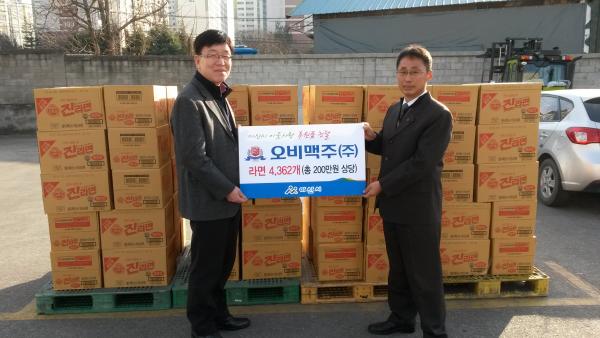 [¾Æ»ê/ctn]ÇѼºÁø ±âÀÚ = ¿Àºñ¸ÆÁ֢ߴ Áö¿ª º¹Áö Çâ»óÀ» À§ÇØ Áö³ 28ÀÏ ¾Æ»ê½Ã ¹æÃൿ¿¡ À§Ä¡ÇÑ ¿Àºñ¸ÆÁÖ ¾Æ»ê¹°·ù¼¾ÅÍ(ÁöÁ¡Àå ±è¹Î½Ä)¿¡¼ ¾Æ»ê½Ã(½ÃÀå º¹±â¿Õ)¿¡ ½Ä·áǰÀ» Àü´ÞÇß´Ù.