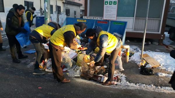 À̳¯ ´Ü¼ÓÀº ¿ø·ë ¹× ¿Ü±¹ÀÎ ±Ù·ÎÀÚ°¡ ¹ÐÁýµÇ¾î ÀÖ¾î ¾²·¹±â ºÒ¹ýÅõ±â°¡ »ó½ÀÀûÀ¸·Î ¹ß»ýÇÏ´Â ½Åâ¸é À¾³»1¸®, À¾³»2¸®¿¡¼ ÀÌ·ïÁ³À¸¸ç, ÀÚ¿ø¼øÈ¯°ú Àü Á÷¿øÀ» 3°³Á¶·Î Æí¼ºÇØ »õº® Ãâ±Ù½Ã°£¿¡ Á¾·®Á¦ ±Ô°ÝºÀÅõ¸¦ »ç¿ëÇÏÁö ¾Ê°í ¹«´Ü ¹èÃâÇÏ´Â ÇàÀ§, À½½Ä¹°¾²·¹±â È¥ÇÕ¹èÃâ ÇàÀ§, ´ëÇüÆó±â¹° ½ºÆ¼Ä¿ ¹Ì ºÎÂø ¹èÃâ ÇàÀ§¿¡ ´ëÇØ ÇöÀå Áöµµ ´Ü¼ÓÀ¸·Î ÀÌ·ïÁ³´Ù.