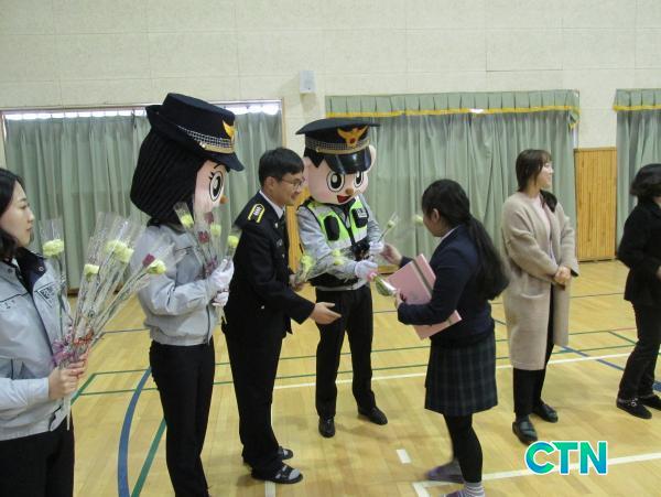 À̳¯ Çà»ç¿¡¼´Â Çб³Àü´ã°æÂû°üµéÀÌ ±³¹®¿¡¼ Á¹¾÷»ýÀ» ¾Ç¼ö·Î ¸ÂÀÌÇÏ¸ç °ÇÀüÇÑ µÚÇ®À̸¦ ´çºÎÇϰí Çà»çÀå¿¡¼´Â ÇѸí ÇÑ¸í¿¡°Ô ²ÉÀ» ³ª´²ÁÖ¸ç Ȱ¦ ÇÉ ²Éó·³ ÇлýµéÀÇ ¹àÀº ¹Ì·¡¸¦ ±â¿øÇß´Ù.