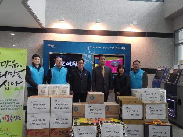 [¾Æ»ê/ctn]ÇѼºÁø ±âÀÚ = K-water ´ëû¼öµµ°Ç¼³´Ü(´ÜÀå ±è¼¼È¯)Àº Áö³ 4ÀÏ ¼³ ¸íÀýÀ» ¾ÕµÎ°í ¹è¹æÀ¾ ÇູŰ¿òÃßÁø´Ü(´ÜÀå ¿Àº´±¹)À» ¹æ¹®ÇØ µ¶°Å³ëÀÎ µî ¼Ò¿ÜÀÌ¿ôÀÇ º¹ÁöÇâ»óÀ» À§ÇØ ½Ò, ¶ó¸é, ÈÞÁö µî 100¸¸¿ø »ó´çÀÇ »ýÇÊǰÀ» Àü´ÞÇÏ°í µû¶æÇÑ Á¤À» ³ª´©´Â 'ÀÌ¿ô»ç¶û ³ª´® ºÀ»ç'¸¦ ½ÇõÇß´Ù.