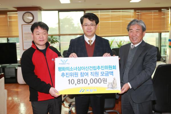 [¾Æ»ê/ctn]ÇѼºÁø ±âÀÚ = ¾Æ»ê½Ã(½ÃÀå º¹±â¿Õ)´Â Áö³ 18ÀÏ ½ÃÀå½Ç¿¡¼ ÆòÈÀÇ ¼Ò³à»ó °Ç¸³À» À§ÇØ Á÷¿øµéÀÌ ¸ðÀº ¸ð±Ý¾× 10,810õ¿øÀ» ÆòÈÀÇ ¼Ò³à»ó ¾Æ»ê°Ç¸³ÃßÁøÀ§¿øÈ¸(»óÀÓ´ëÇ¥ È«½Â¿í, ÀÌÇÏ À§¿øÈ¸)¿¡ Àü´ÞÇß´Ù°í ¹àÇû´Ù.