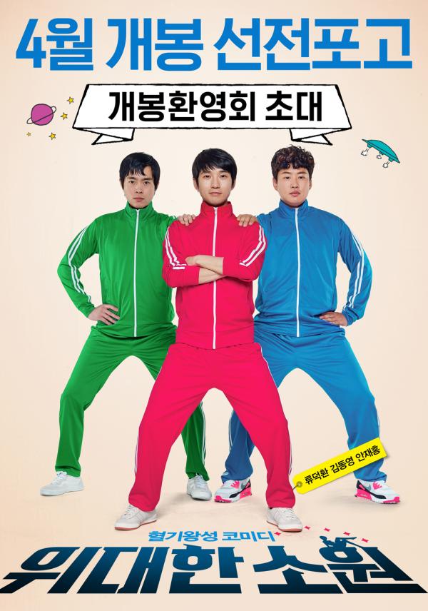 °³ºÀÈ®Á¤°ú ÇÔ²² óÀ½À¸·Î °ø°³µÈ 'À§´ëÇÑ ¼Ò¿ø'ÀÇ °³ºÀ ¼±ÀüÆ÷°í ½ºÆ¿Àº ¹è¿ìµéÀÇ 3ÀÎ 3»ö ¸Å·ÂÀ» ¿³º¼ ¼ö ÀÖ´Ù. ½ºÆ¿¿¡¼´Â ¼¼ ¹è¿ì°¡ »ö »ö±òÀÇ Æ®·¹ÀÌ´× º¹À» ÀÔ°í ¸¶Ä¡ 'ÈķڽøÇ'À» ¿¬»ó½Ã۸ç ÄÚ¹ÍÇÑ ¸Å·ÂÀ» »Ë³»°í ÀÖ´Ù. ƯÈ÷ ¾û¶×ÇÑ Æ÷Áî·Î ¹«ÇѸŷÂÀ» ¹ß»êÇÏ´Â ¹è¿ìµéÀÇ ¸ð½ÀÀº ½ºÆ¿¸¸À¸·Îµµ Å« ¿ôÀ½À» ÀھƳ»°Ô ¸¸µç´Ù. ¶Ç °³ºÀ ¼±ÀüÆ÷°í ¿µ»óÀº ¿ôÀ½ÀÌ ²÷ÀÌÁö ¾Ê´Â Æ÷½ºÅÍ ÃÔ¿µÇöÀåÀÇ À¯ÄèÇÑ ºÐÀ§±â¸¦ °í½º¶õÈ÷ ´ã¾Æ³½ ÇÑ Æí, ¹è¿ìµéÀÌ Á÷Á¢ ÀüÇÏ´Â 'À§´ëÇÑ ¼Ò¿ø' °Ãß ÄÚ¸àÆ®±îÁö ´õÇØÁ® ¿ª´ë±Þ ÄÚ¹Í ¾Ó»óºí¿¡ ´ëÇÑ ±â´ë°¨À» °íÁ¶½ÃŲ´Ù. »Ó¸¸ ¾Æ´Ï¶ó, À̹ø¿¡ °ø°³µÈ ½ºÆ¿°ú ¿µ»ó ¸ðµÎ 3¿ù 4ÀÏ ¿ÀÈÄ 7½Ã °Ç±¹´ëÇб³ »õõ³â°ü¿¡¼ °³ÃÖµÉ '°³ºÀ ȯ¿µÈ¸'¸¦ °íÁöÇϸç, °ü°´µé°ú ¹è¿ìµéÀÌ ÇÔ²² È£ÈíÇÏ°Ô µÉ ±× ³¯ÀÇ Çà»ç¿¡ ´ëÇÑ ±Ã±ÝÁõÀ» Å©°Ô ºÒ·¯ ÀÏÀ¸Å²´Ù.