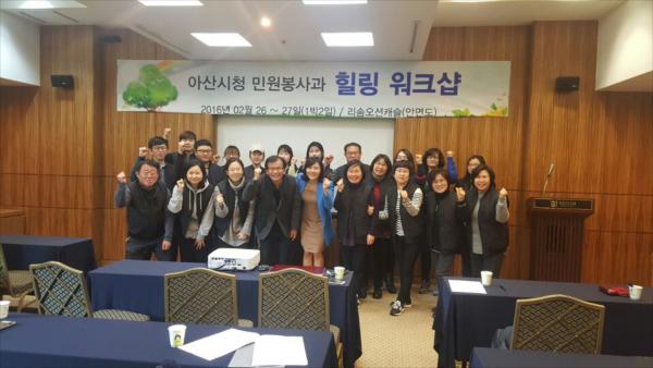 [¾Æ»ê/ctn]ÇѼºÁø ±âÀÚ = ¾Æ»ê½Ã(½ÃÀå º¹±â¿Õ)´Â ¹Î¿øºÀ»ç°ú Á÷¿øµéÀÌ Áö³´Þ 26¡¤27ÀÏ 1¹Ú2Àϰ£ ÀÏÁ¤À¸·Î žȱº ¾È¸éÀ¾ ¼ÒÀç ¸®¼Ø¿À¼Çij½½¿¡¼ ¹Î¿øÀÀ´ë °ø¹«¿ø ÀÚÁ¸°¨ ȸº¹°ú Ä£Àý ½Çõ´ÙÁüÀ» À§ÇÑ Á÷¿ø ¿öÅ©¼óÀ» ½Ç½ÃÇß´Ù°í ¹àÇû´Ù.