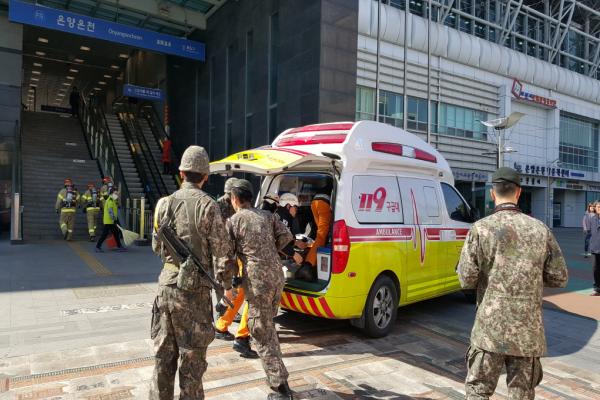 [¾Æ»ê/ctn]ÇѼºÁø ±âÀÚ = ¾Æ»ê¼Ò¹æ¼(¼Àå ÀÌÁ¾ÇÏ)´Â 15ÀÏ ¿Â¾ç¿Âõ¿ª¿¡¼ À¯°ü±â°ü ÇÕµ¿ Å×·¯´ëºñ ±¸Á¶´ë¿ø Ưº°±³À°ÈÆ·ÃÀ» ½Ç½ÃÇß´Ù.