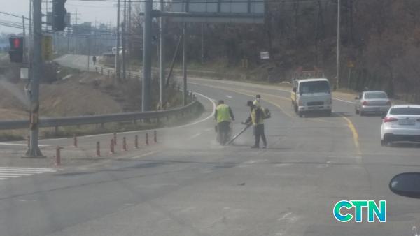 ½ÇÁ¦·Î Áö³ 27ÀÏ ¿ÀÀü 11½Ã°æ Áö¹æµµ 649¼± ÀϺΠ±¸°£ÀÎ ¼»ê½Ã À½¾Ï¸é À²¸ñ»ç°Å¸®¿¡¼ µµ·ÎÀ¯Áöº¸¼ö°¡ ÀÌ·ïÁö¸é¼ ¹Ù¶÷À» ÀÏÀ¸Å°´Â ±â°èÀÇ ±²À½°ú ÇÔ²² µµ·ÎÇ¥¸éÀÇ µµ»öÆäÀÎÆ®, ¾Æ½ºÄÜ, ½Ã¸àÆ® ºÐÁø µîÀÌ ½ÅÈ£´ë±âÁßÀÎ Â÷·®Àº ¹°·Ð Àαٳó°æÁö·Î ³¯·Á Áֹεé·ÎºÎÅÍ ´«»ìÀ» ÂîǪ¸®°Ô Çß´Ù.