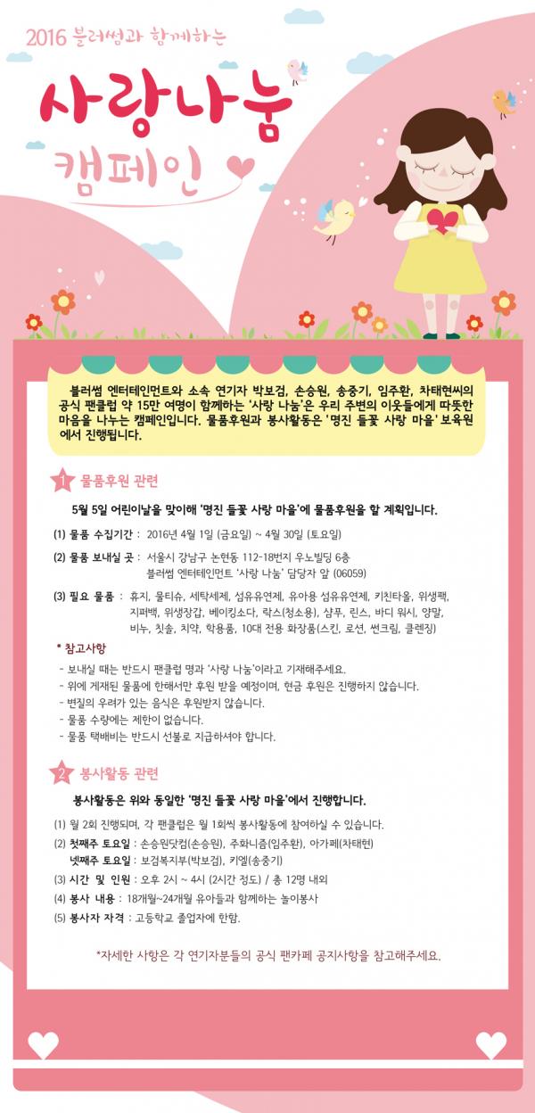 [¿¬¿¹/ctn]È«À¯¼± ±âÀÚ = 2013³âºÎÅÍ ½ÃÀÛÇÑ ºí·¯½æ ¿£ÅÍÅ×ÀÎ¸ÕÆ®(Blossom Entertainment)ÀÇ '»ç¶û ³ª´®' Ä·ÆäÀÎÀÌ ¿ÃÇØ·Î 4³â°¸¦ ¸ÂÀÌÇß´Ù.