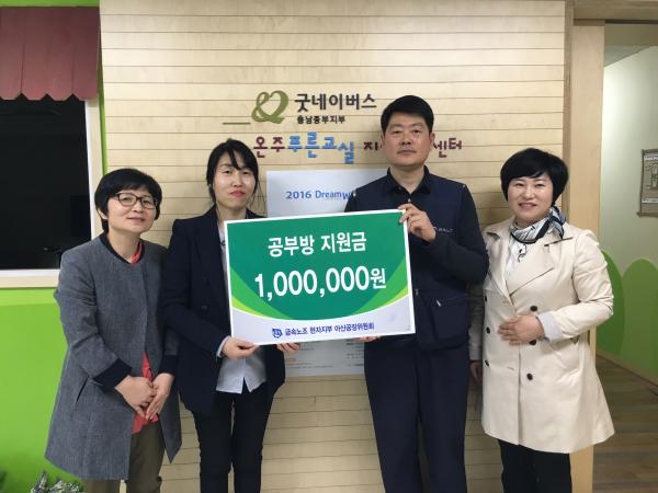 [¾Æ»ê/ctn]ÇѼºÁø ±âÀÚ = Çö´ëÀÚµ¿Â÷³ëµ¿Á¶ÇÕ ¾Æ»ê°øÀåÀ§¿øÈ¸(ÀÇÀå ±è¿µ»ó)´Â Áö³ 4ÀÏ ¿Â¾ç6µ¿ ÇູŰ¿òÃßÁø´Ü°ú Çù¾àÁßÀÎ ¿ÂÁÖǪ¸¥±³½Ç Áö¿ª¾Æµ¿¼¾ÅÍ(¼¾ÅÍÀå ÀÌÁ¾ÀÇ)¸¦ ¹æ¹®ÇØ ÈÄ¿ø±ÝÀ» 100¸¸¿øÀ» Àü´ÞÇß´Ù.