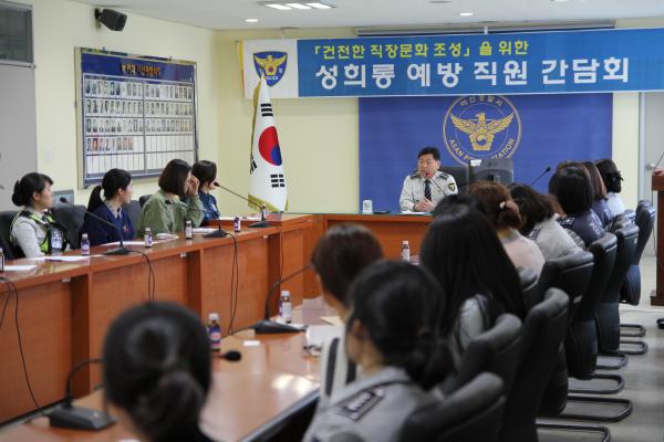 [¾Æ»ê/ctn]ÇѼºÁø ±âÀÚ = ¾Æ»ê°æÂû¼(¼Àå ½ÅÁÖÇö)´Â 5ÀÏ °æÂû¼ ¼ÒȸÀǽǿ¡¼ Á÷Àå ³» ¼ºÈñ·Õ ¿¹¹æÀ» À§ÇÑ ¿©Á÷¿ø °£´ãȸ¸¦ ½Ç½ÃÇß´Ù.