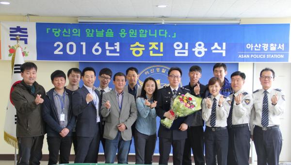 2016³â ¾Æ»ê°æÂû¼ ½ÂÁøÀÓ¿ë ¿¹Á¤ÀÚ 20¸í Áß, µµ°í¼±ÀåÆÄÃâ¼ÒÀå ±èÀÍÀÀ °æÀ§, Á¤º¸ÈÀåºñ°è ¹Ú¸íȯ °æÀå, »ýȰ¾ÈÀü°è ÃÖ¸í¿¹ °æÀå µî 3¸íÀÌ 4¿ù 20ÀÏÀÚ 2Â÷ ½ÂÁø ÀÓ¿ëµÈ °ÍÀ¸·Î, À̳¯ ½ÂÁø ÀÓ¿ë½ÄÀº ÀÓ¸íÀå ¹× °è±ÞÀå ¼ö¿©, °æÂû¼Àå °Ý·Á ¼øÀ¸·Î ÁøÇàµÇ¾ú°í, ½ÅÁÖÇö ¼ÀåÀº "°è±ÞÀÌ ¿Ã¶ó°£´Ù´Â °ÍÀº ´Ü¼øÈ÷ °è±ÞÀåÀÌ ¹Ù²î´Â °ÍÀÌ ¾Æ´Ï¶ó, ÀÚ½ÅÀÇ ´É·Â°ú ¼ºÇ°µµ °°ÀÌ ¿Ã¶ó°¡´Â °ÍÀ̸ç, ½ÂÁøÀÇ ±â»ÝÀ» °¡Á·µé°ú ÇÔ²² ³ª´³À¸¸é ÁÁ°Ú´Ù"°í °Ý·ÁÇß´Ù.
