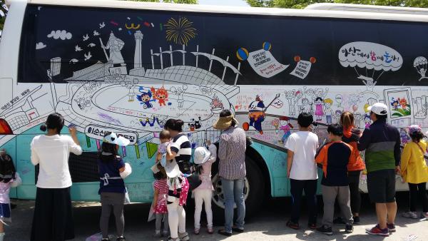 ¹ö½º¿¡ ±×·ÁÁø ¹Ø±×¸²Àº üÀü¿¡ Âü¿©ÇØ Áñ°Ì°Ô Áñ±â´Â ¾Æ»ê½Ã¹ÎÀÇ ¸ð½ÀÀ¸·Î Çà»ç¿¡ Âü¿©ÇÑ ¾ÆÀ̵é°ú °¡Á·µéÀÌ ±×¸²¿¡ »öÀ» Ä¥ÇØ ¿Ï¼ºÇÏµí ±×¸²ÀÇ ¸ð½Àó·³ ÇÔ²² Áñ±â´Â üÀüÀÌ µÇÀÚ´Â Àǹ̿¡¼ ±âȹµÇ¾ú´Ù.
