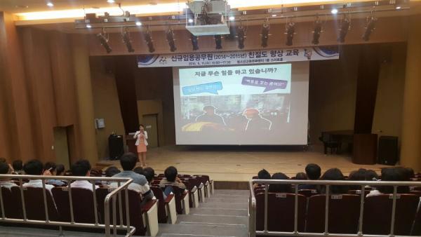 [¾Æ»ê/ctn]ÇѼºÁø ±âÀÚ = ¾Æ»ê½Ã(½ÃÀå º¹±â¿Õ)´Â 11ÀÏ Ã»¼Ò³â±³À°¹®È¼¾ÅÍ 1Ãþ ½º¸¶Æ®È¦¿¡¼ 2014³â¡2015³â ½Å±Ô ÀÓ¿ëµÈ °ø¹«¿ø 118¸íÀ» ´ë»óÀ¸·Î'¹Î¿øÀÎÀÇ ¸¸Á·µµ¸¦ ³ôÀÏ ¼ö ÀÖ´Â °¨¼º¼ºñ½º'¶õ ÁÖÁ¦·Î ¸ÂÃã Ä£Àý±³À°À» ½Ç½ÃÇß´Ù.
