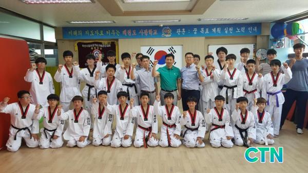 À̳¯ üÀ°È¸ ÀÌ¿îÁ¾ ¼ö¼®ºÎȸÀå°ú ±è¼®°â »ç¹«±¹ÀåÀº űǵµ»ç°üÇб³ ÈÆ·ÃÀå¿¡¼ ÇÕµ¿ÈÆ·ÃÁßÀÎ µµ¹ÎüÀü űǵµ´ëÇ¥¼±¼ö´ÜÀ» ¹æ¹®Çß´Ù.