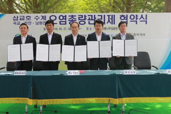 [¾Æ»ê/ctn]ÇѼºÁø ±âÀÚ = ȯ°æºÎ¿Í ÃæÃ»³²µµ ±×¸®°í ¾Æ»ê¡¤Ãµ¾È¡¤´çÁø½Ã´Â »ð±³È£ÀÇ ¼öÁúÀ» °³¼±Çϱâ À§ÇÏ¿© °î±³Ãµ¡¤Ãµ¾Èõ ±×¸®°í ³²¿øÃµ À¯¿ª¿¡ ¿À¿°ÃÑ·®°ü¸®Á¦¸¦ µµÀÔÇϱâ·Î Çϰí, 27ÀÏ ¾Æ»ê½Ã °î±³Ãµ ÀºÇ೪¹«±æ±¤Àå¿¡¼, ±â¾÷ü¡¤È¯°æ´Üü¡¤°ü·Ã±â°ü µîÀÌ Âü¼®ÇÑ °¡¿îµ¥ Çù¾à½ÄÀ» °¡Á³´Ù.