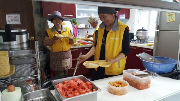 [¾Æ»ê/ctn]ÇѼºÁø ±âÀÚ = ¾Æ»ê½Ã µµ°í¸é ÇູŰ¿òÃßÁø´Ü(´ÜÀå ÀÌ¿ëÀÎ)Àº Áö³ 8ÀÏ °ü³» ÇØºñŸƮ Áö¿ª¾Æµ¿¼¾ÅÍ(¼¾ÅÍÀå ¹Ú¼º½Ä)¿¡¼ ¹«·á½Ä»ç Á¦°ø(Â¥Àå¸é)À» Á¦°øÇß´Ù.