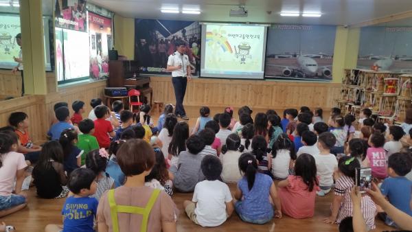 [¾Æ»ê/ctn]ÇѼºÁø ±âÀÚ = ¾Æ»ê°æÂû¼(¼Àå ½ÅÁÖÇö)´Â,Áö³ 13ÀÏ, ¾Æ»ê½Ã ÅÁÁ¤¸é¿¡ À§Ä¡ÇÑ '¸¼Àº¼¼»ó¾î¸°ÀÌÁý'À»¹æ¹®ÇØ 3¡7¼¼ ¿µÀ¯¾Æ 100¿©¸íÀ» »ó´ë·Î ±³Åë¾ÈÀü ±³À°À» ½Ç½ÃÇß´Ù.