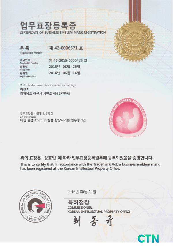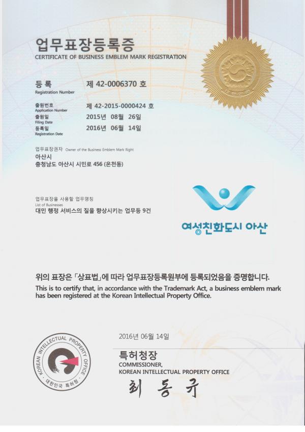 ¿©¼ºÄ£Èµµ½Ã ¾Æ»ê½Ã, ½É¹ú ¹× ¿¥ºí·³ »óÇ¥ µî·Ï