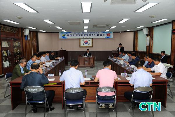 <¿¹»ê±º°ø¾àÀÌÇàÆò°¡À§¿øµéÀÌ 26ÀÏ ±ºÃ» Á¦1ȸÀǽǿ¡¼ ¿¸° ÀüüȸÀÇ¿¡ Âü¼®ÇØ È¸ÀÇ ÀڷḦ °ËÅäÇϰí ÀÖ´Ù.>