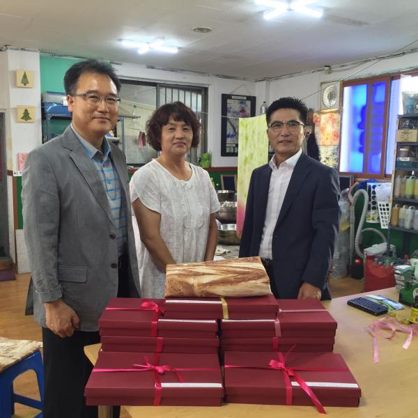 [¾Æ»ê/ctn]ÇѼºÁø ±âÀÚ = 2015³â 7¿ù ¾Æ»ê½Ã ¿Â¾ç2µ¿ ÇູŰ¿òÃßÁø´Ü(´ÜÀå °Áر¸)°ú Çù¾àÀ» ¸ÎÀº ÁÖ½Äȸ»ç À̹̼±ÅؽºÅ¸ÀÏ¾ÆÆ®(´ëÇ¥ À̹̼±)°¡ Áö³ 12ÀÏ Àú¼Òµæ°¡±¸ Áö¿øÀ» À§ÇØ 150¸¸¿ø »ó´çÀÇ ¿©¸§ ÀÌºÒ 9ü¸¦ Àü´ÞÇß´Ù.