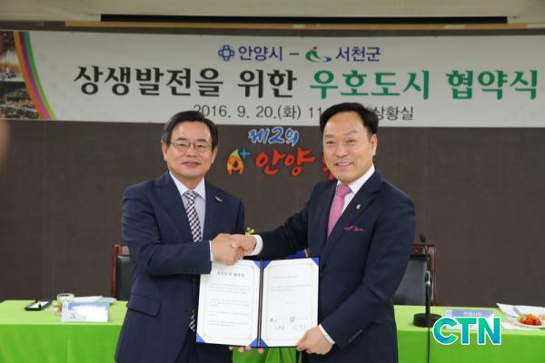 [¼Ãµ/ctn]ÀÓÁ¾º¹ ±âÀÚ = Ãæ³² ¼Ãµ±º(±º¼ö ³ë¹Ú·¡)Àº 20ÀÏ ¾È¾ç½Ãû¿¡¼ ³ë¹Ú·¡ ¼Ãµ±º¼ö, ÀÌÇÊ¿î ¾È¾ç½ÃÀå, ½Ã¡¤±ºÀÇȸ ÀÇÀå ¹× ÀÇ¿ø µî 30¿© ¸íÀÌ Âü¼®ÇÑ °¡¿îµ¥ »óÈ£±³·ù ¹× »ó»ý¹ßÀüÀ» À§ÇÑ ¿ìÈ£µµ½Ã Çù¾àÀ» ü°áÇß´Ù°í ¹àÇû´Ù.