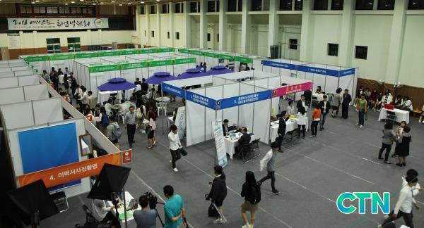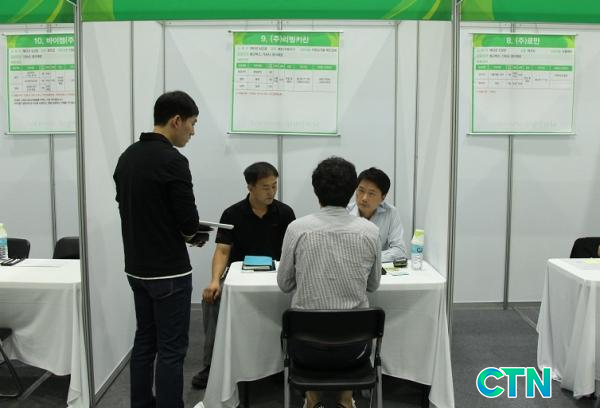 <Áö³ 27ÀÏ ¿¹»êÁ¾ÇտÀå »ýȰüÀ°°ü¿¡¼ ¿¸° Ãë¾÷¹Ú¶÷ȸ¿¡ ¹æ¹®ÇÑ ±¸Á÷ÀÚµéÀÌ ±â¾÷ºÎ½º¸¦ ã°í ÀÖ´Ù.>