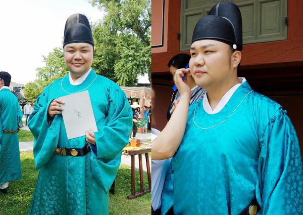 °ø°³µÈ »çÁø ¼Ó ÅÂÇ×È£´Â '±¸¸£¹Ì ±×¸° ´Þºû' ´ëº»À» µé°í Ä«¸Þ¶ó¸¦ ÇâÇØ ¾Æ½¬¿òÀÌ ´ã±ä ¹Ì¼Ò¸¦ Áþ°í ÀÖ´Ù. ¶ÇÇÑ µå¶ó¸¶ÀÇ Àç¹Ì¸¦ ´õÇÑ ·¯ºí¸® ³»°ü 'µµ±â'·Î º¯½Å Çϱâ Àü, ÁøÁöÇÑ ¸ð½ÀÀ¸·Î ÀÇ»ó üũ¸¦ Çϰí ÀÖ´Â ¸ð½ÀÀÌ ´«±æÀ» ²ö´Ù.